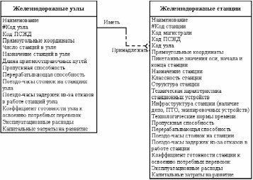 На рис. 2.3 приведён пример диаграммы ERD для сущностей системы информационного обеспечения проектирования комплексного развития МТС «железнодорожные узлы» и «железнодорожные станции».