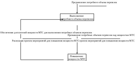 Условие представляет собой событие (или события), вызывающее переход, например, превышение потребных объемов перевозок над наличной мощностью МТС.