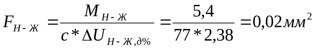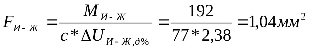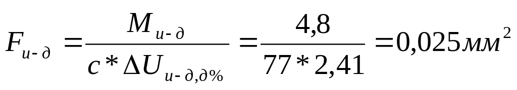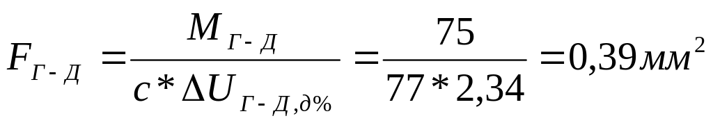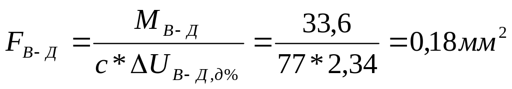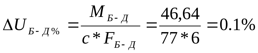 Допустимые потери напряжения на ответвлениях от точки д составят: