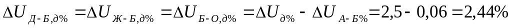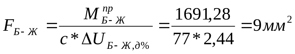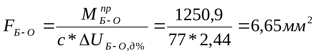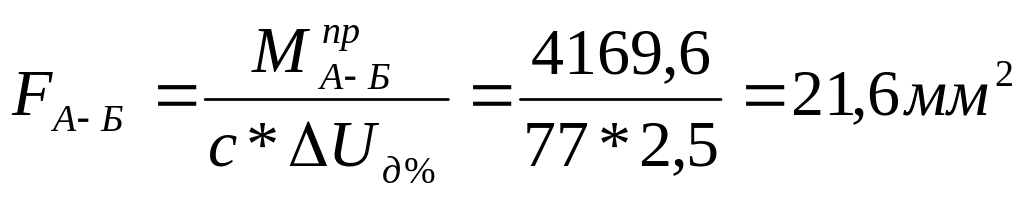 Допустимые потери напряжения на ответвлениях от точки б составят: