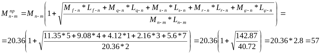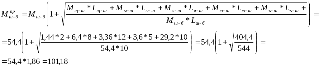 Вычисляем приведенные моменты нагрузок на участках, где сеть разветвляется, а именно: участки п-о, б-о, б-ж, д-б, а-б.