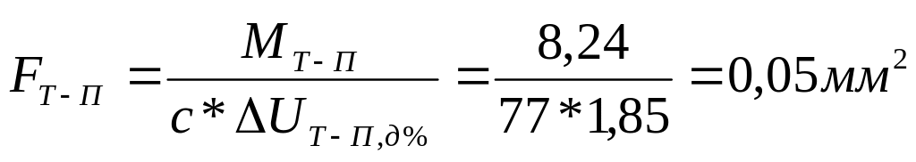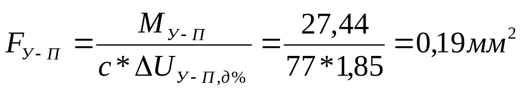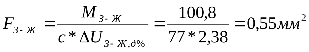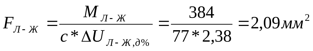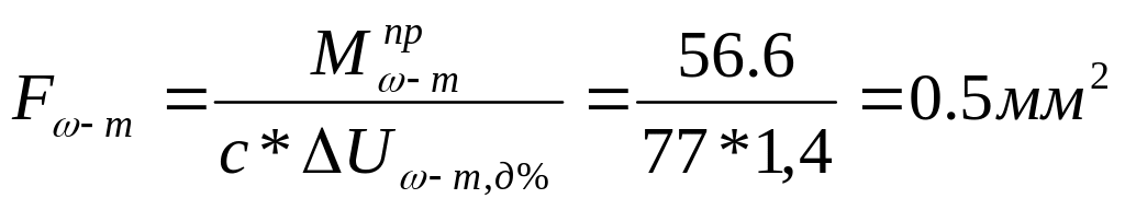 Допустимые потери напряжения на ответвлениях от точки m составят:
