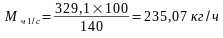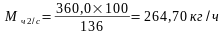 Часовой расход муки для каждого вида и сорта муки производится по формуле: