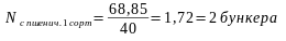 Количество бункеров для хранения муки пшеничной первого и второго сортов по формуле (1.18) равно: