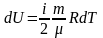 i – число степеней свободы молекул (число независимых координат, задающих изменение положения молекулы в пространстве при поступательном движении и вращении). Поскольку вращение атома вокруг собственной оси не изменяет его положения в пространстве, то для одноатомных молекул i = 3, для двухатомных i = 5, для трехатомных и более i = 6.