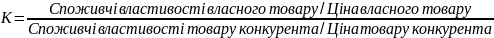 Коефіцієнт конкурентоспроможності розраховуємо за формулою: