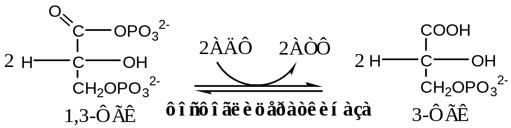 8.Фосфоглицератмутаза (3-ФГК-2-ФГК-изомераза) осуществляет перенос фосфатного остатка в ФГК из положения 3 положение 2.
