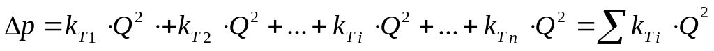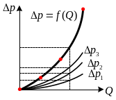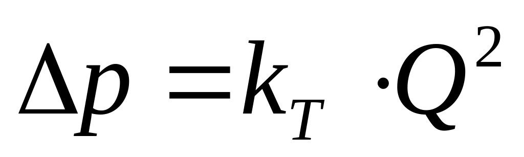Зависимость (11.3) называют характеристикой трубопровода. Она показывает изменение суммарных потерь давления в трубопроводе от величины расхода жидкости, подаваемой от источника энергии давления к ее потребителю. Следует обратить внимание на то, что потери давления растут квадрату расхода жидкости (рис.2).