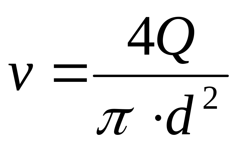 Если определить скорость движения жидкости в трубопроводе через объемный расход