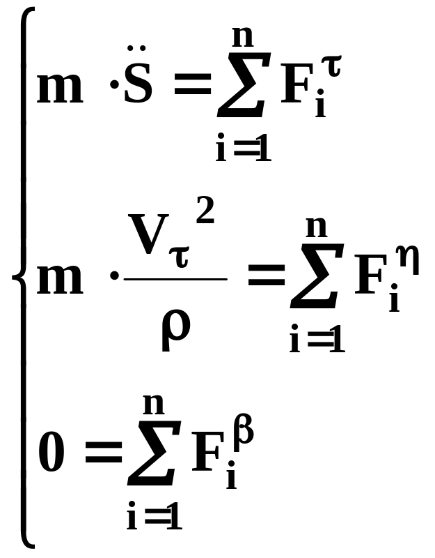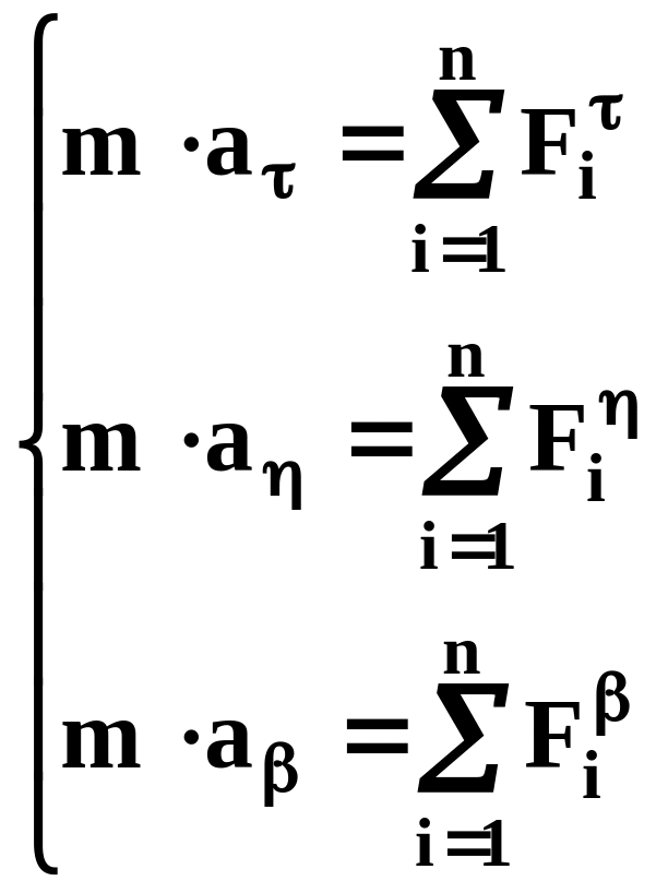 Если уравнение (1) разложить по осям естественной системы координат (КИНЕМАТИКА стр. 4), получим