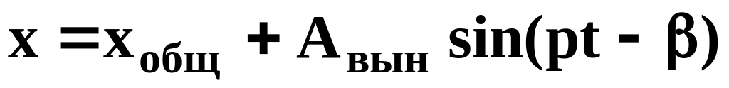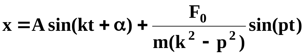 ДВИЖЕНИЕ ПОД ДЕЙСТВИЕМ ВОССТАНАВЛИВАЮЩЕЙ И ВОЗМУЩАЮЩЕЙ СИЛ ЯВЛЯЕТСЯ СУММОЙ ДВУХ ГАРМОНИЧЕСКИХ КОЛЕБАНИЙ: С ЧАСТОТОЙ k (СОБСТВЕННЫЕ КОЛЕБАНИЯ) И ЧАСТОТОЙ р (ВЫНУЖДЕННЫЕ КОЛЕБАНИЯ).