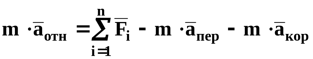 При определении характеристик движения материальной точки в подвижной системе координат необходимо при составлении дифференциальных уравнений движения учитывать движение самой системы координат. Уравнение (17) существенно раздвигает рамки классической механики и позволяет решать задачи в неинерциальных системах координат. Уравнение (17) называют УРАВНЕНИЕМ ДВИЖЕНИЯ материальной точки В НЕИНЕРЦИАЛЬНОЙ СИСТЕМЕ КООРДИНАТ.