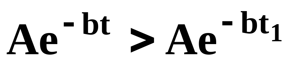 Движение материальной точки, которое происходит по закону (35), называется АПЕРИОДИЧЕСКИМ. В апериодическом движении присутствует фактически только одно полуколебание. Материальная точка просто приближается замедленно к своему равновесному положению. На рис. 2 показаны примеры поведения апериодического закона при различных начальных условиях.