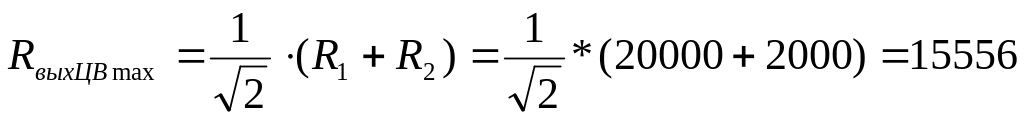Примем значения сопротивлений резисторов цепи Вина R1 и R3, равными максимальному значению сопротивления цепи Вина (RmaxЦВ), а значения R2 и R4, равными минимальному значению (RmixЦВ).