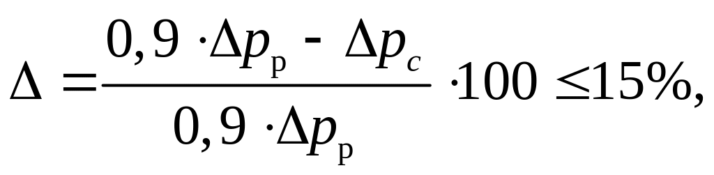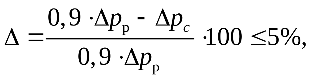 По результатам гидравлического расчета выполняют проверку. Т.е. определяют процент запаса располагаемого давления над величиной потерь давления. Запас дожжен составлять не менее 10%.