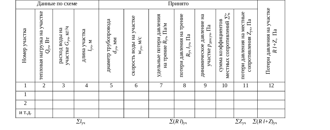 Примечание. Сопротивление тройника, расположенного на границе двух смежных участков, относится к участку с меньшим массовым расходом воды.