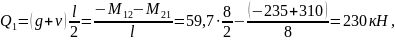 1) шеткі аралықта 1+2 М12=-235 кН·м, М21= -310 кН·м; жүктеме g+v=59,7 кН/м; көлденең күштер: