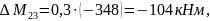 2) Ортаңғы аралықта М23=М32= -300 кН/м,