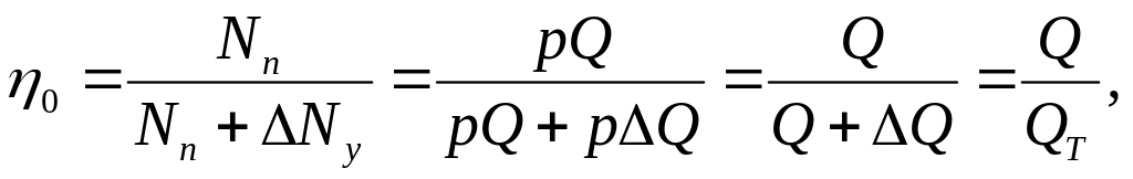 Объемный КПД насоса о - отношение полезной мощности насоса к сумме полезной мощности и мощности, потерянной с утечками