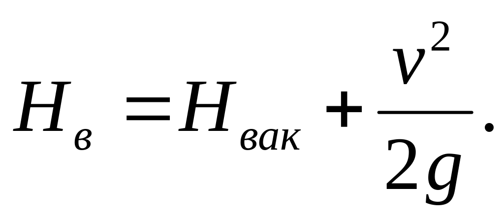 Употребляется также понятие вакуумметрической высоты всасывания Нв, которая связана с вакуумом зависимостью: