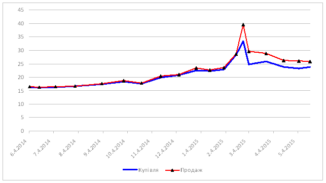 Рис. 2.4. Динֺамֺіка облֺіковоֺї ставки в Українֺі за перֺіод 2014-2015 років [21]