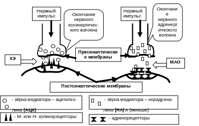 Схема холинергического и адренергического синапса