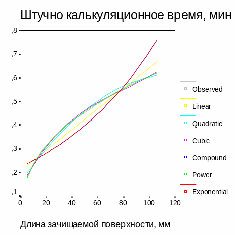 Задание: Находим однофакторную парную регрессию. За независимую переменную примем - «Длину зачищаемой поверхности» (l), за зависимую – «Штучно калькуляционное время» (t)