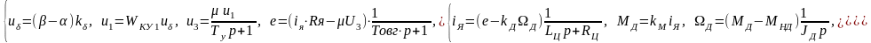 В данной системе уравнений (2) первые 5 уравнений описывают электрическую часть схемы. А с 6 по 11 описывают механическую часть, начиная с вращающего момента ИД и заканчивая частотой вращения ОУ – баллера руля.