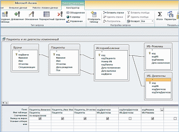 Рисунок 30. Конструктор запроса «Пациенты и их диагнозы_измененный»