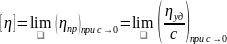 Многочисленными исследованиями выявлено, что приведенная вязкость разбавленных растворов ВМС ηпр возрастает прямо пропорционально с увеличением концентрации раствора c. Прямая, описывающая зависимость ηпр от c, отсекает на оси ординат ηпр отрезок, соответствующий ηпр при бесконечном разбавлении (c→0) раствора (рис.5). Это значение приведенной вязкости называется характеристической вязкостью [η], или предельным вязкостным числом, или параметром Штаудингера: