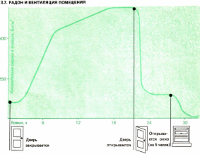 Радон концентрируется в воздухе внутри помещений лишь тогда, когда они в достаточной мере изолированы от внешней среды (рис. 3.7). Поступая внутрь помещения тем или иным путем (просачиваясь через фундамент и пол из грунта или, реже, высвобождаясь из материалов, использованных в конструкции дома), радон накапливается в нем. В результате в помещении могут возникать довольно высокие уровни радиации, особенно если дом стоит на грунте с относительно повышенным содержанием радионуклидов или если при его постройке использовали материалы с повышенной радиоактивностью. Герметизация помещений с целью утепления только усугубляет дело, поскольку при этом еще более затрудняется выход радиоактивного газа из помещения.