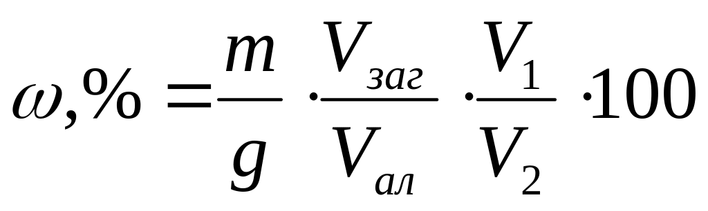 де Vал – аліквотна частина розчину, V1 – об’єм розчину, який отримали розчиненням наважки сплаву у кислоті (100 мл), мл; V2 - об’єм розчину, який відібрали для проведення електролітичного виділення купруму, мл; g - маса наважки сплаву, г.