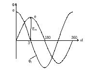 Рис. 14.3. График изменения магнитного потока ротора относительно проводника статора и график наводимой эдс