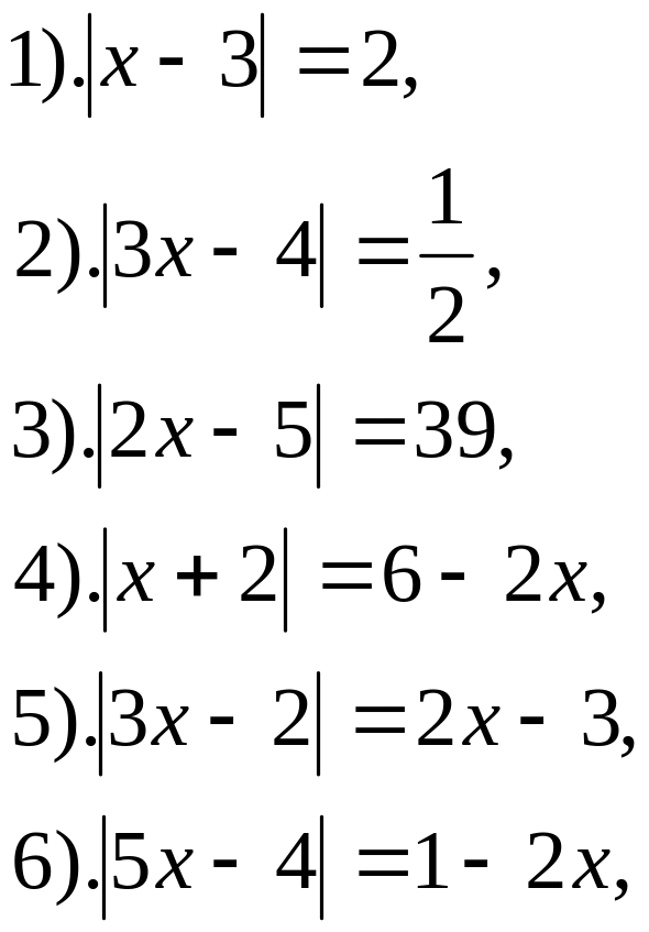 Эти уравнения, после раскрытия модулей сводятся к решению простых линейных уравнений вида кх+в=0, для которых возможны случаи: