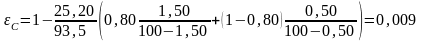 При рідкому шлаковидаленні частка золи, яка видаляється у вигляді леткої золи aвин становить 0,8. У котлі відбувається неповне згоряння палива, у першу чергу через механічний недопал. Ступінь окислення вуглецю для робочої маси палива C в енергетичній установці розраховується за формулою: