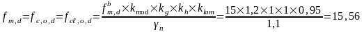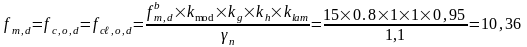 Знаходимо розрахункові опори деревини для верхнього поясу(у порівняні з колоною будуть мінятись коефіцієнти які відповідають за товщину дощок і висоту перерізу).