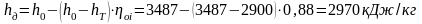 считая процесс адиабатным найдем энтальпию теоретической точки конца процесса расширения, опустив вертикаль из точки начала процесса расширения на изобару конечного давления