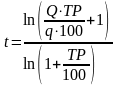 Логарифмирование выражения для Q дает следующую формулу для расчета срока исчерпания ресурса: