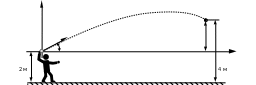 Для иллюстрации рассмотрим такую задачу: Вася Пупкин бросает мяч со скоростью 12 м/с. Под каким углом к горизонту ему нужно бросить мяч, чтобы попасть в мишень на высоте 4 м на расстоянии 10 м от Васи? В момент броска мяч находится на высоте 2 м.