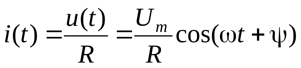ток через сопротивление совпадает по фазе с напряжением, приложенным к сопротивлению;