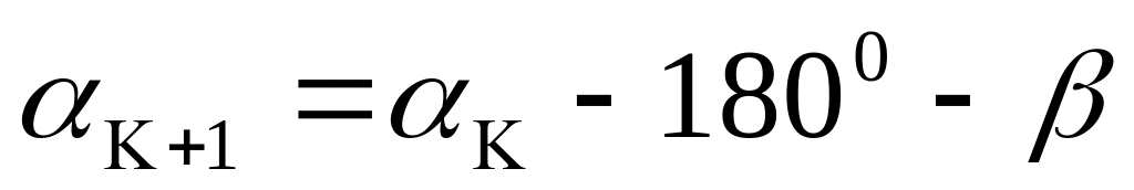 183.Дирекционные углы в теодолитных ходах вычисляют (через справа по ходу лежащие горизонтальные углы) по формуле: