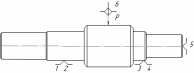 Пристосування застосовується при фрезеруванні шпонкових пазів, лисок уступів в деталі типу вал (рисунок 49) і призначене для базування заготовки двома центровими отворами: ліва конічна поверхня (установча центруюча база - опорні точки 1,2,3) і права конічна поверхня (центруюча поверхня - опорні точки 4,5); площиною (опорна база, опорна точка 6), якою заготовка базується на направляючу втулку переднього центру і закріплення заготовки силою Р.