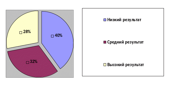 Среди мужчин процент людей, получивших низкий результат равен 40% (см. Диаграмму 2 Приложение 2)