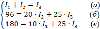 Значения токов I1, I2, выраженные через I3, подставляем в первое уравнение (а) системы и решаем это уравнение: