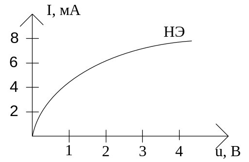 2 R1 = 1 кОм, R2 = 2 кОм, E1 = 1 B, E2 = 4 B. ВАХ НЭ известна. Рассчитать ток, протекающий через НЭ.