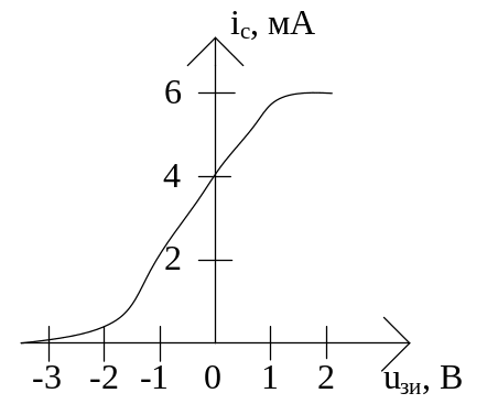 3 На вход усилителя подаётся напряжение uвх(t) = (-3+4 cos100t), В. Проходная ВАХ транзистора известна. Построить график тока ic(ⱷt).