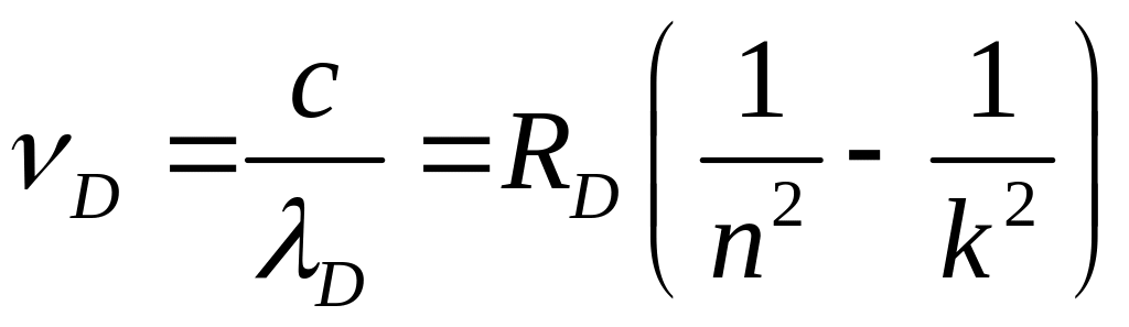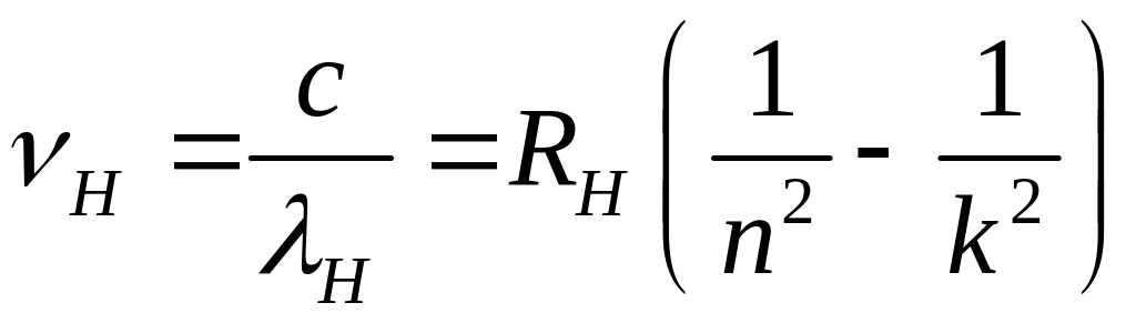 - Частоты линий для водорода определяются по формуле: