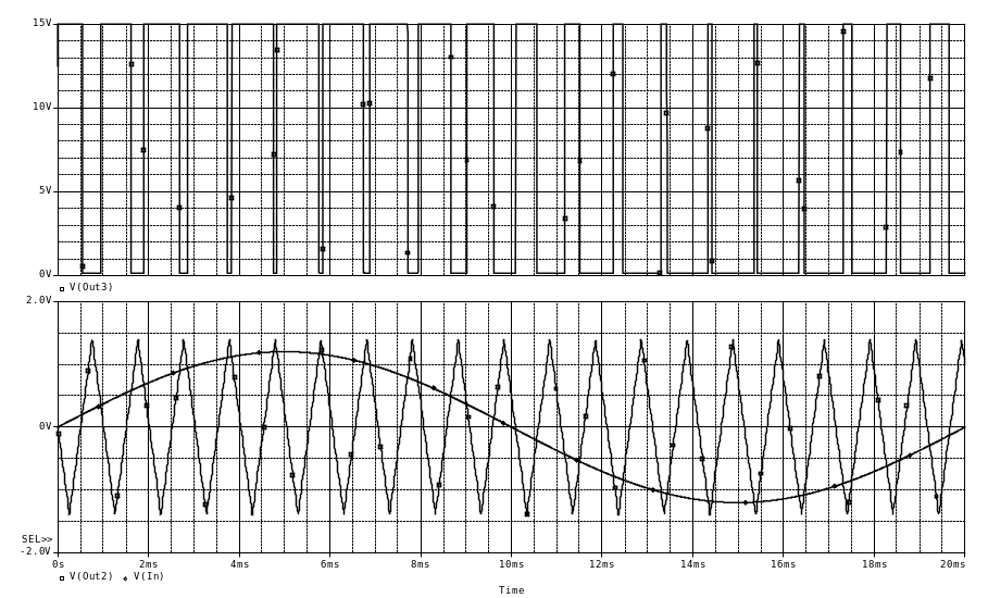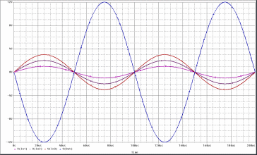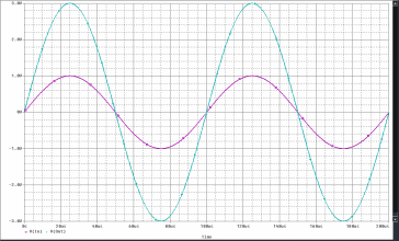 Измените один из резисторов, например R4, на 0,5%, до 5,025k. Повторите моделирование (рис. 38). Убедитесь, что небольшое рассогласование схемы существенно исказило выходной сигнал.