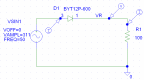 Исследование работы выпрямителей также можно проводить в режиме переходного процесса Transient. Введем схему однополупериодного выпрямителя, работающего непосредственно от сети 220В (рис. 20).