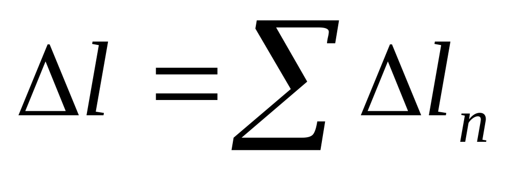 Для бруса, имеющего несколько участков, отличающихся размерами поперечного сечения или величиной напряжения, изменение длины всего бруса будет равно алгебраической сумме удлинений (укорочений) отдельных участков: